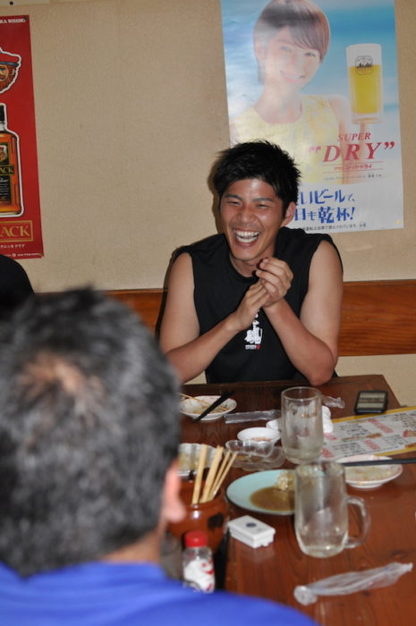 かくしてヒカルのウォーミングアップも万全、地元の居酒屋 やきとり一心 で「ヒカルを囲む会」がスタートしました。直前のキャンセルがあって、4人でのスタートとなりました。